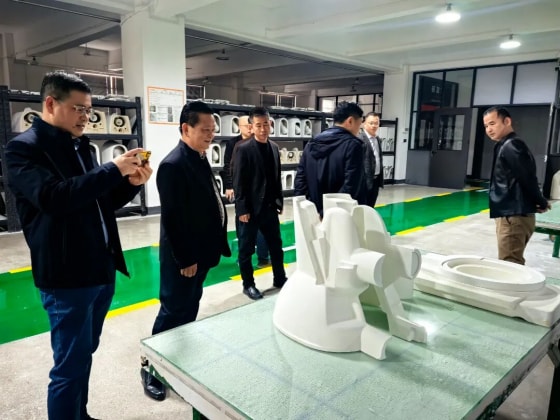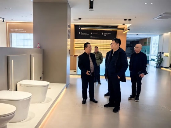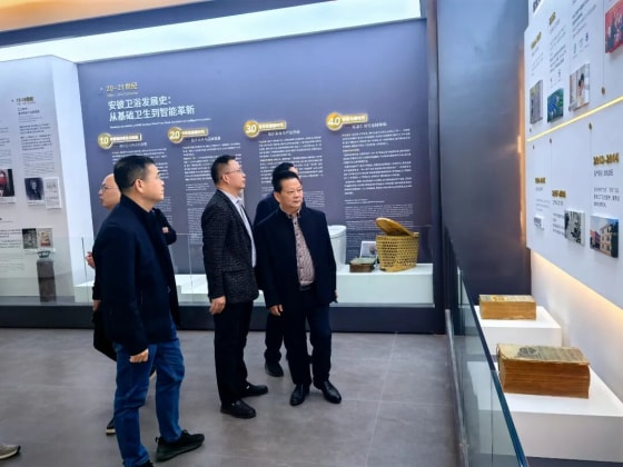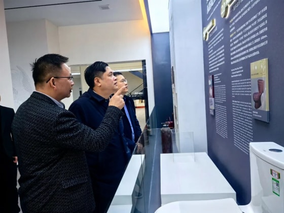 为做好《扶持陶瓷产业高质量发展的若干条措施》制订工作,听取企业诉求。2026年2月8日上午,潮州市副市长陈红政,在市工信局长苏林春、潮安区工科局、古巷镇政府领导的陪同下,到潮安区古巷镇安彼卫浴公司调研。