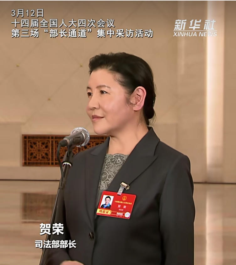 3月12日,十四届全国人大四次会议第三场“部长通道”开启。司法部部长贺荣介绍,今