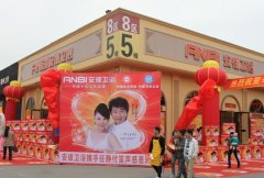安彼卫浴成都富森店携手付笛生任静感恩回馈消费者。成都安彼富森店内外装扮喜庆,现场