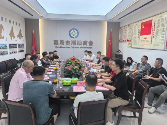 潮州市潮安区工科局副局长吴粤鸣、潮州市古巷陶瓷协会会长陈克平带领会员卫浴企业代表一行拜访“义乌市潮汕商会”并进行交流学习
