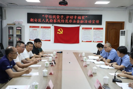 座谈会上,市区两级检察院与企业代表围绕执法司法中的痛点问题展开深入交流,广泛收集企业意见,摸排相关线索,承诺将积极协调配合,为企业排忧解难。此外,潮安区人民检察院还开展了 “守住钱袋子?护好幸福家” 防范非法金融活动宣传,增强企业金融风险防范意识。
