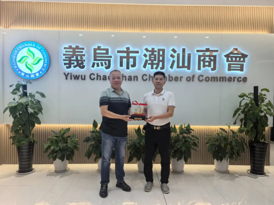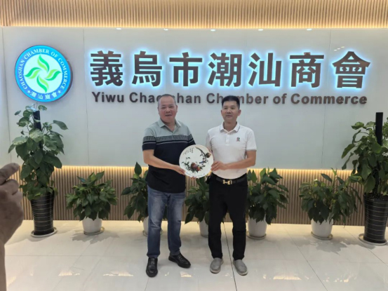 2025年6月27日,潮州市潮安区工科局副局长吴粤鸣、潮州市古巷陶瓷协会会长陈克平带领会员卫浴企业代表一行,到浙江省义乌市,拜访“义乌市潮汕商会”并进行交流学习,受到“义乌市潮汕商会”执行会长黄庆辉等商会领导的热烈欢迎与接待,双方互赠纪念品,友谊长存。